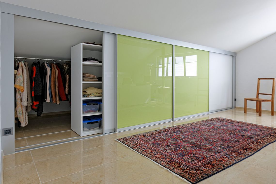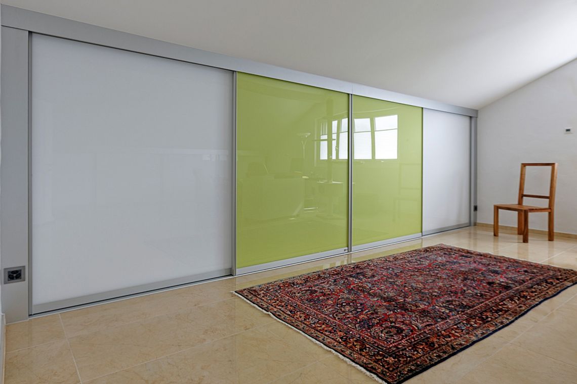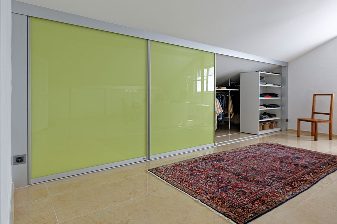 Dauerbrenner bei Schiebetüren ist Acrylglas. Das Material ist vom Gewicht leicht und in der Optik sehr ansprechend. Hier wurde hochglänzendes Acrylglas in der Farbe Lemongrün eingesetzt. Weil das Material zur statischen Aufladung neigt, wird es bereits bei der Herstellung der künftigen Schiebetüren mit einem eigens dafür geeigneten Antistatik-Pflegemittel behandelt. Die AUF&ZU Kunden erhalten mit der Lieferung kostenlos ein Fläschchen dieses Mittels für die künftigen Nachbehandlungen.